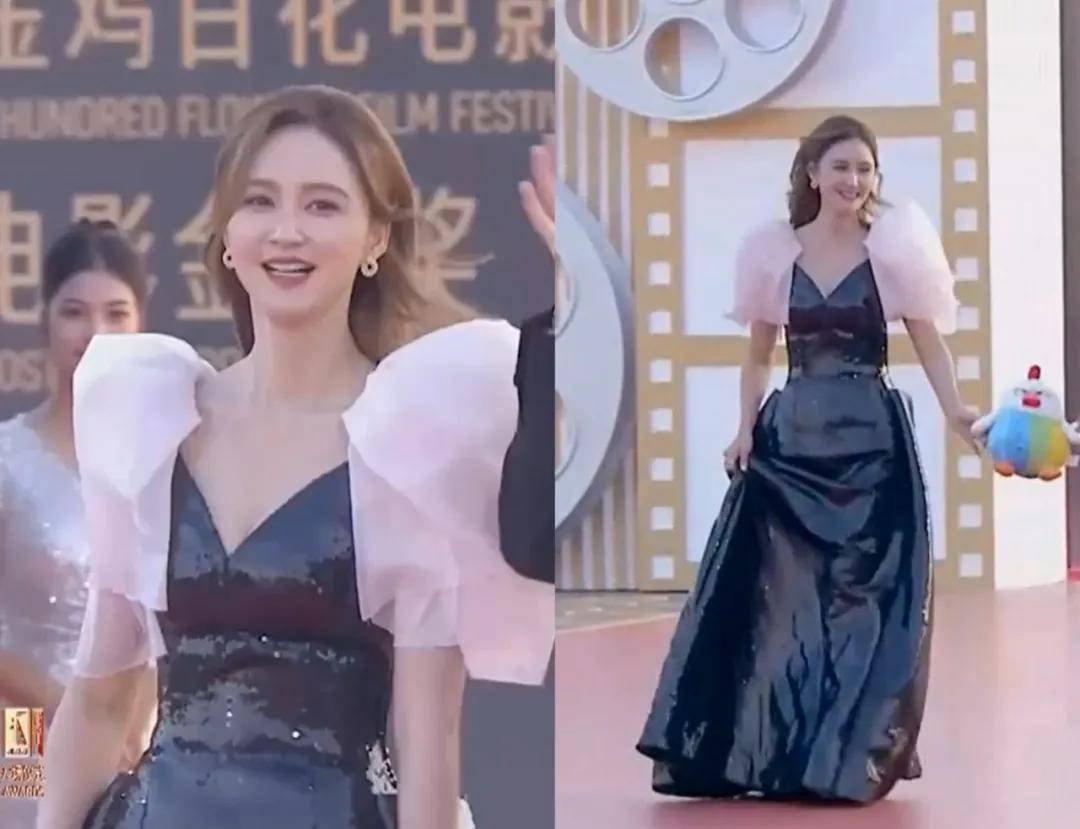 张歆艺穿了一条有着粉色泡泡袖的黑色长裙,这套造型比起出席金鸡奖,更适合陪孩子去主题乐园拍写真。
