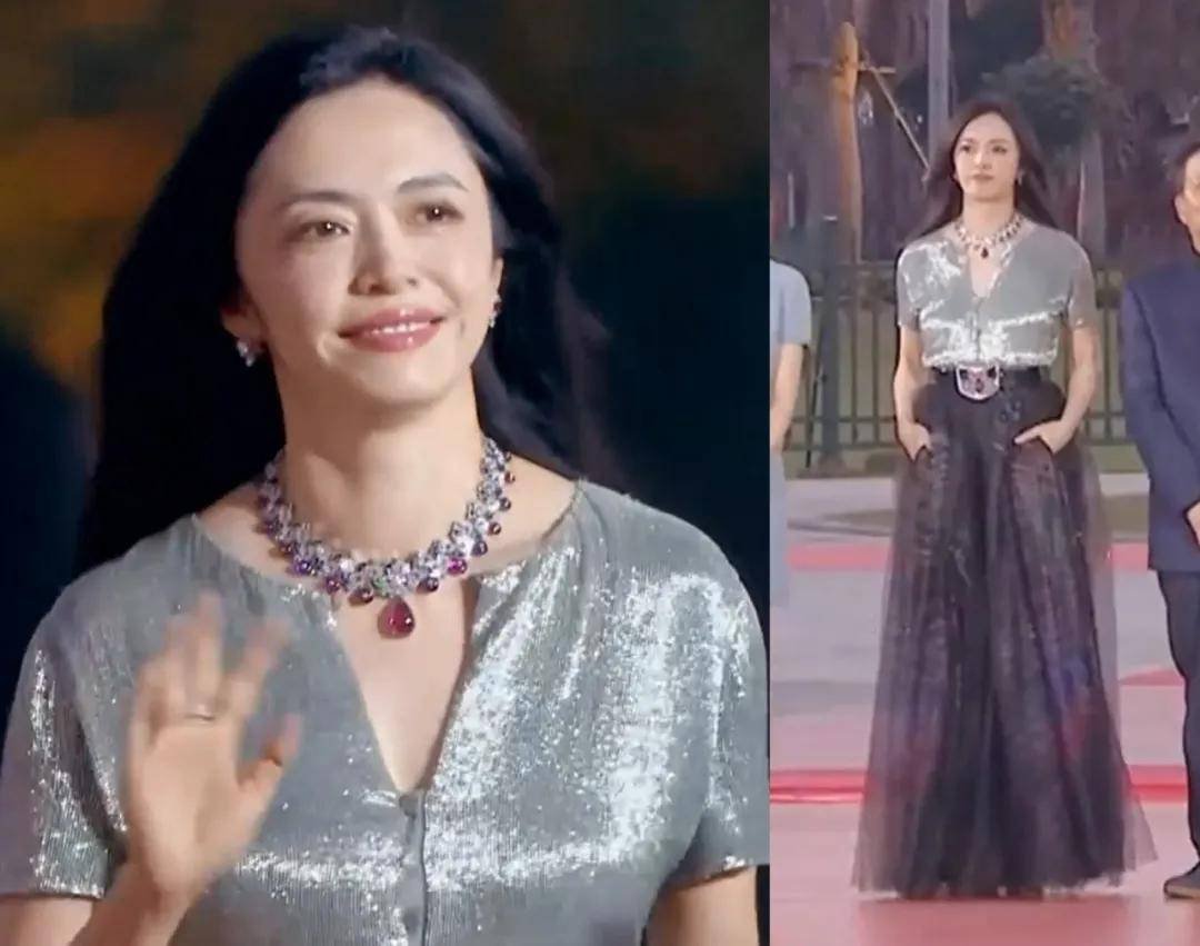 王丽坤穿了一条银色流苏长裙,凸显了她高挑的身形。这些年她的外形变化并不大,岁月在她身上仿佛没留下什么痕迹。