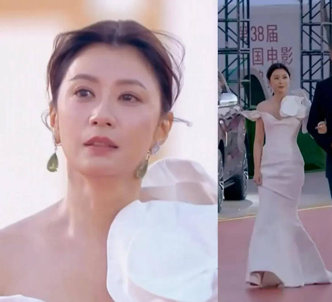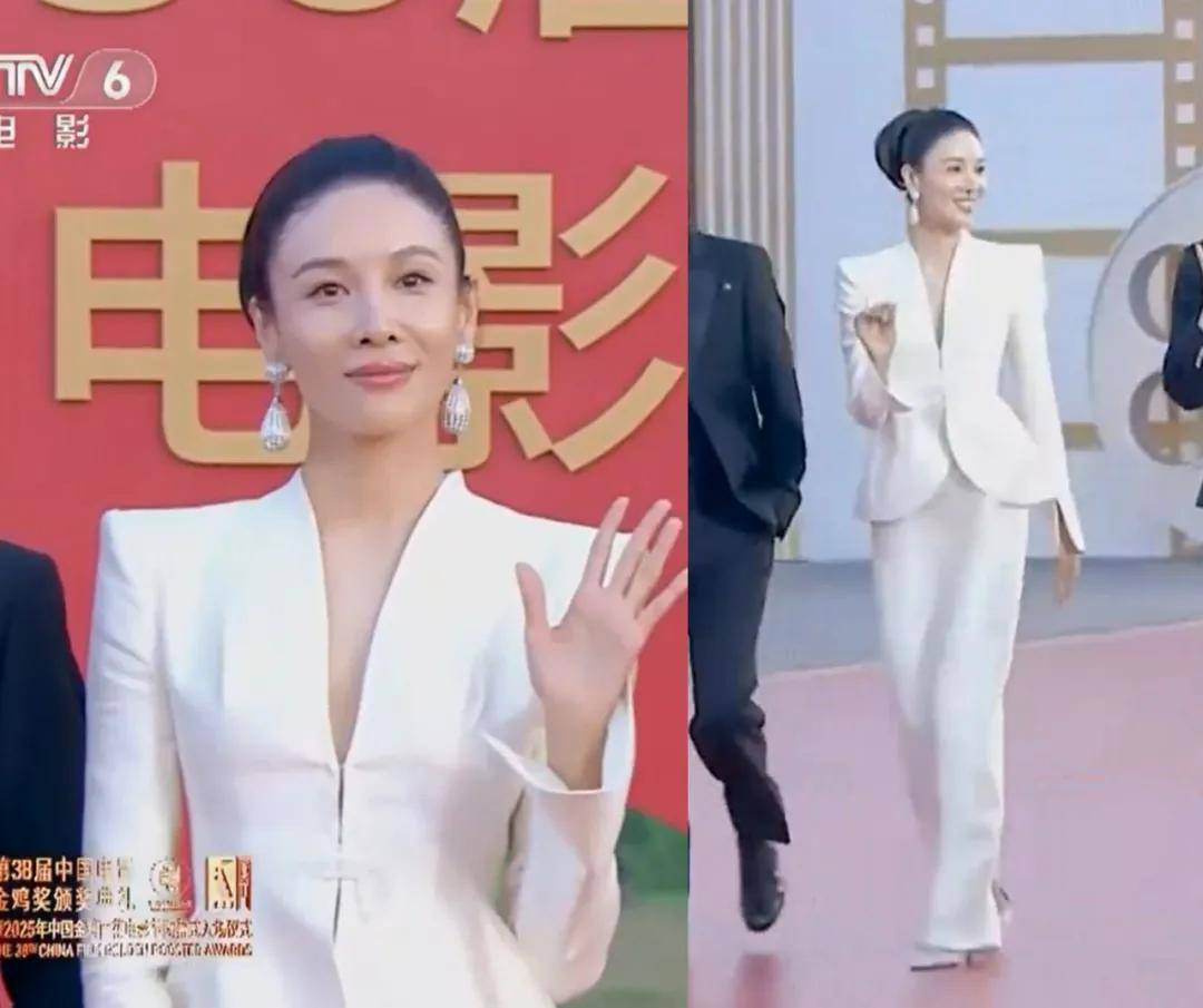 曾经是“龙女郎”的张蓝心,感觉好久没在大型活动上露脸了。这次出席金鸡奖,她穿了一套白色西装搭配勒头皮的短马尾,整体风格有种央视主持人的感觉。