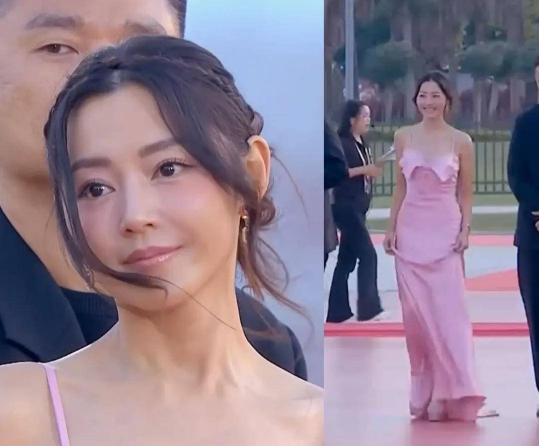 入围了最佳女主角的卫诗雅,穿了一条粉色吊带长裙。颜值和妆造都没什么问题,问题是粉色的裙子真的不好驾驭,容易显黑。