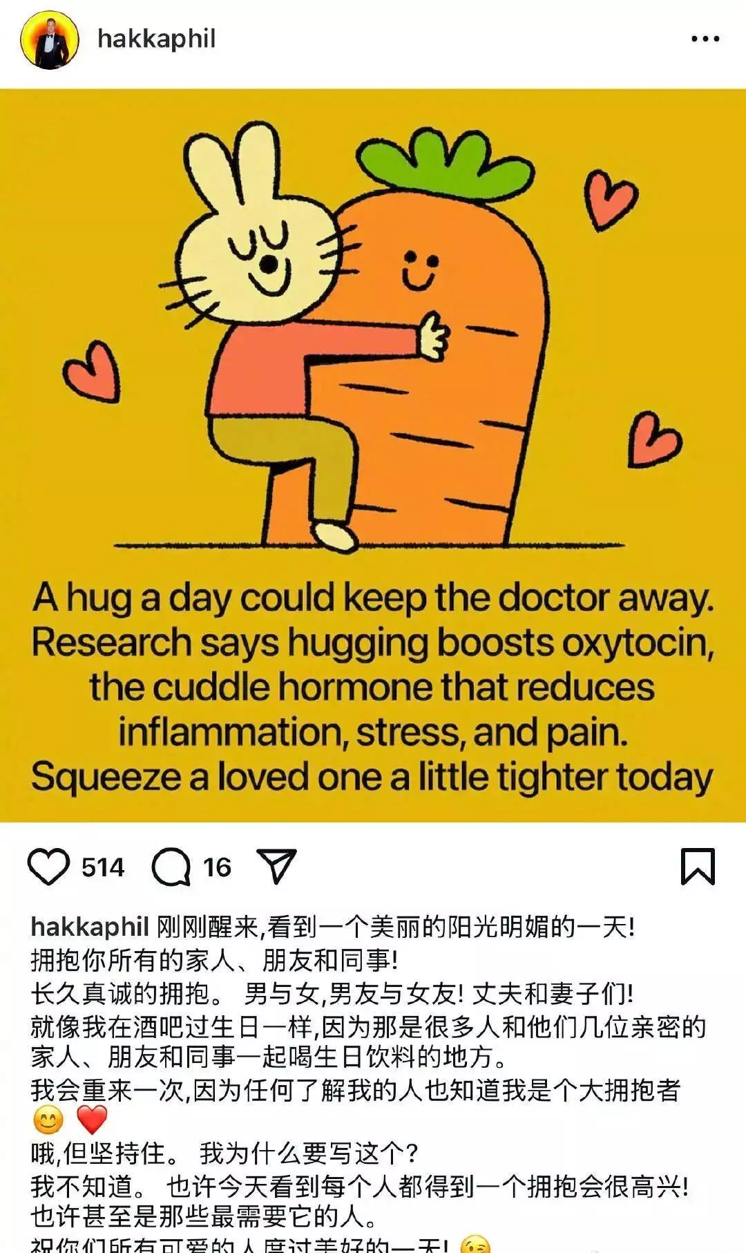 对此,胡杏儿的老公现实在社交平台澄清了此事,并且写道当日是很多朋友都在现场,自己是一个喜欢和他人拥抱的人。