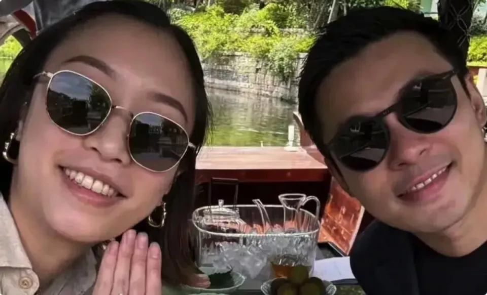 Namfon和霍启仁的互动也满满都是彼此的欣赏,合影里Namfon总是自然地搂着他、靠着他,笑得干净又明亮。