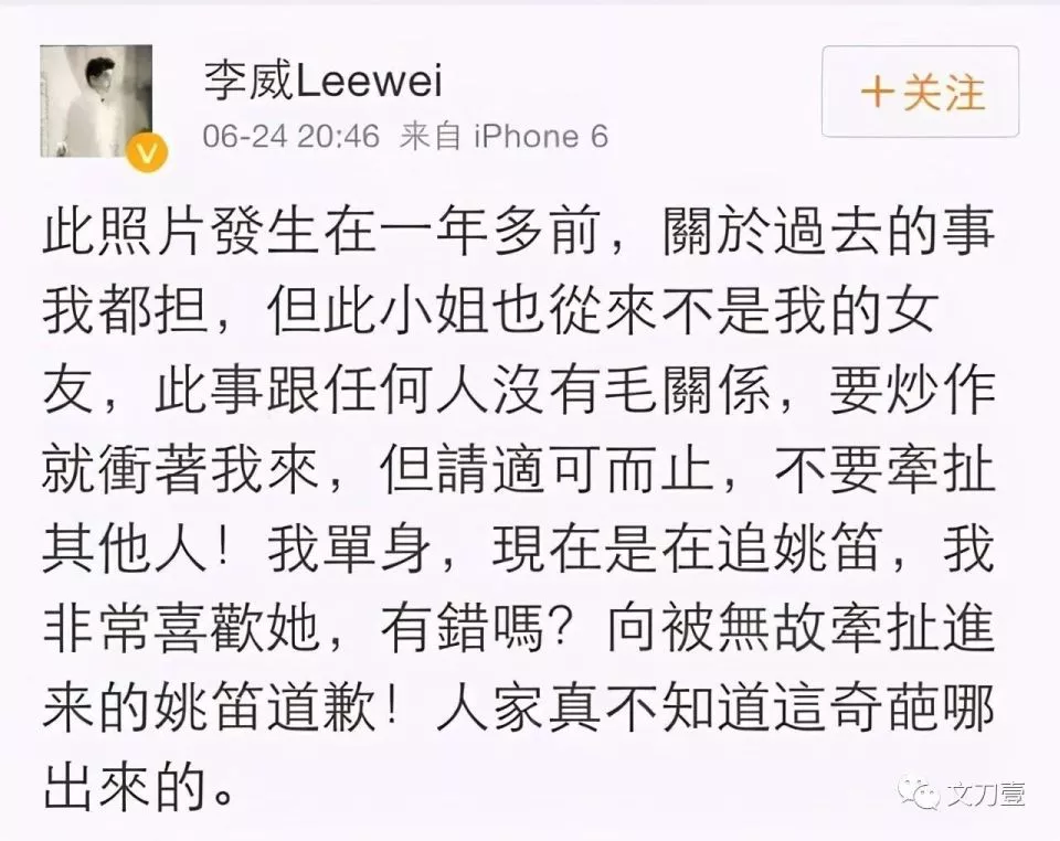 “我单身,现在是在追姚笛,我非常喜欢她,有错吗?向被无故牵扯进来的姚笛道歉!”