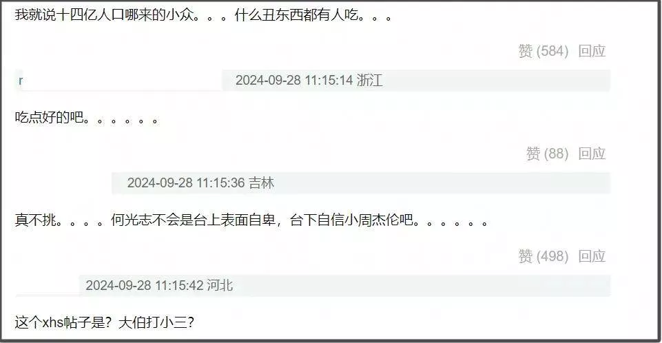 就在话题热度升温之后,网友们兵分两路,一边涌入这位博主的评论区,询问为何删帖,质疑究竟是被处理,还是在幻想“受情伤”。另一拨人则是直奔何广智的评论区,要求何广智立刻回应,其中一些粉丝更是直言“太受伤”,同时希望这些不是真的。