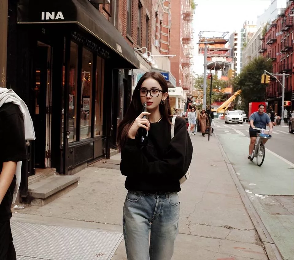 黑色的卫衣,以及黑色的牛仔裤,很好凸显秋日女神那种特征,无论是在漫步在巴黎街头,还是那种西式那种餐厅,都能很好的凸显作为一个实力女神那种味道,不仅五官精致,在身材上也能达到了神行具备了。