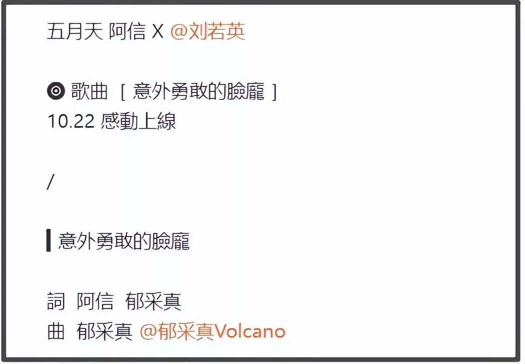 五月天和刘若英合作的新歌《意外勇敢的脸庞》作词人和作曲人都有郁采真的参与,而郁采真因在外网把“杭州场”写成“海外场”被质疑是台独艺人,其本人也从未就立场争议诚恳道歉,两篇道歉信也都未明确说“台湾省是中国的一部分”,还是内地特供,未在外网同步发布,所以遭到五月天粉丝厌弃,认为其背刺了五月天,但五月天还坚持跟她合作。