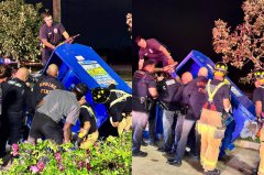 美国德州一名男子受困旧衣回收箱不幸身亡。(本报合成,撷取自Mark Herman, Harris County Constable Precinct 4/脸书) 美国德州哈里森县近日发生一起意外事故,一名疑似无家可归的男子以倒立...